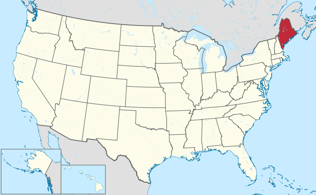 Maine is a state in the New England region of the northeastern United States, bordered by the Atlantic Ocean to the east and south, New Hampshire to the west, and the Canadian provinces of Quebec to the northwest and New Brunswick to the northeast. Maine is both the northernmost and easternmost portion of New England. It is known for its scenery—its jagged, mostly rocky coastline, its low, rolling mountains, its heavily forested interior and picturesque waterways—as well as for its seafood cuisine, especially lobsters and clams. Source: Wikipedia